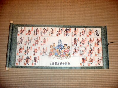 霊場参拝(納経)の御証として、お掛軸、集印帳、おいずる(白衣)に |